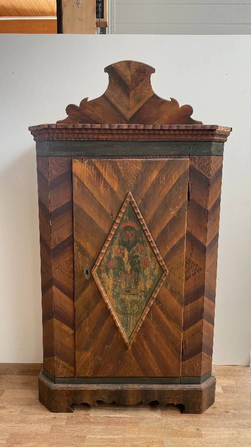 Antiker Schrank aus Fichte – Kunstvoll bemalt und gut erhalten
