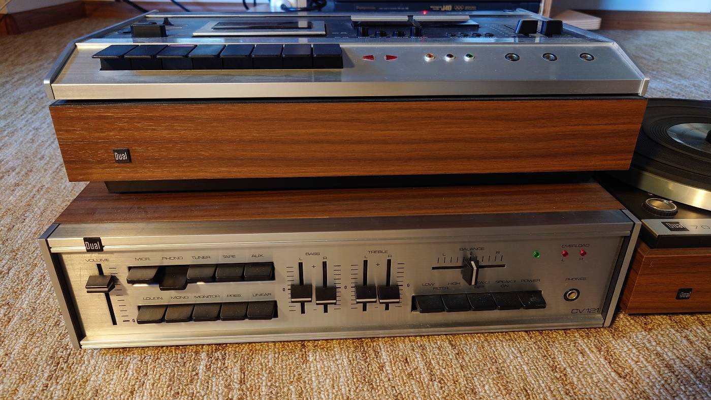 Angebot ohne Boxen, bestehend aus Dual C 901, CV 121. Kassettendeck läuft, Verstärker hat Strom. Konnte die weitere Funktion aufgrund mangelnder Boxen-Ausrüstung nicht testen.Einzeln oder im Paket abzugeben.
