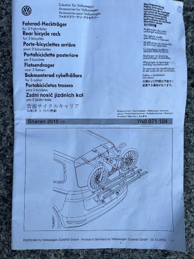 Es steht ein VW Fahrrad-Heckträger für 3 Fahrräder zum Verkauf,
