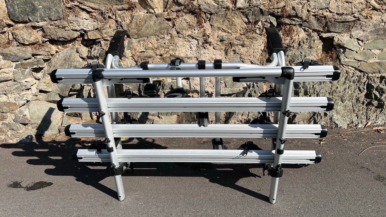 Der Fahrradträger wurde von mir im Mai 2024 neu bei VW in Meran für 785€ gekauft und insgesamt nur wenig genutzt. Der Fahrradträger befindet sich dem Alter und geringen Nutzung entsprechend in einem sehr guten Zustand.