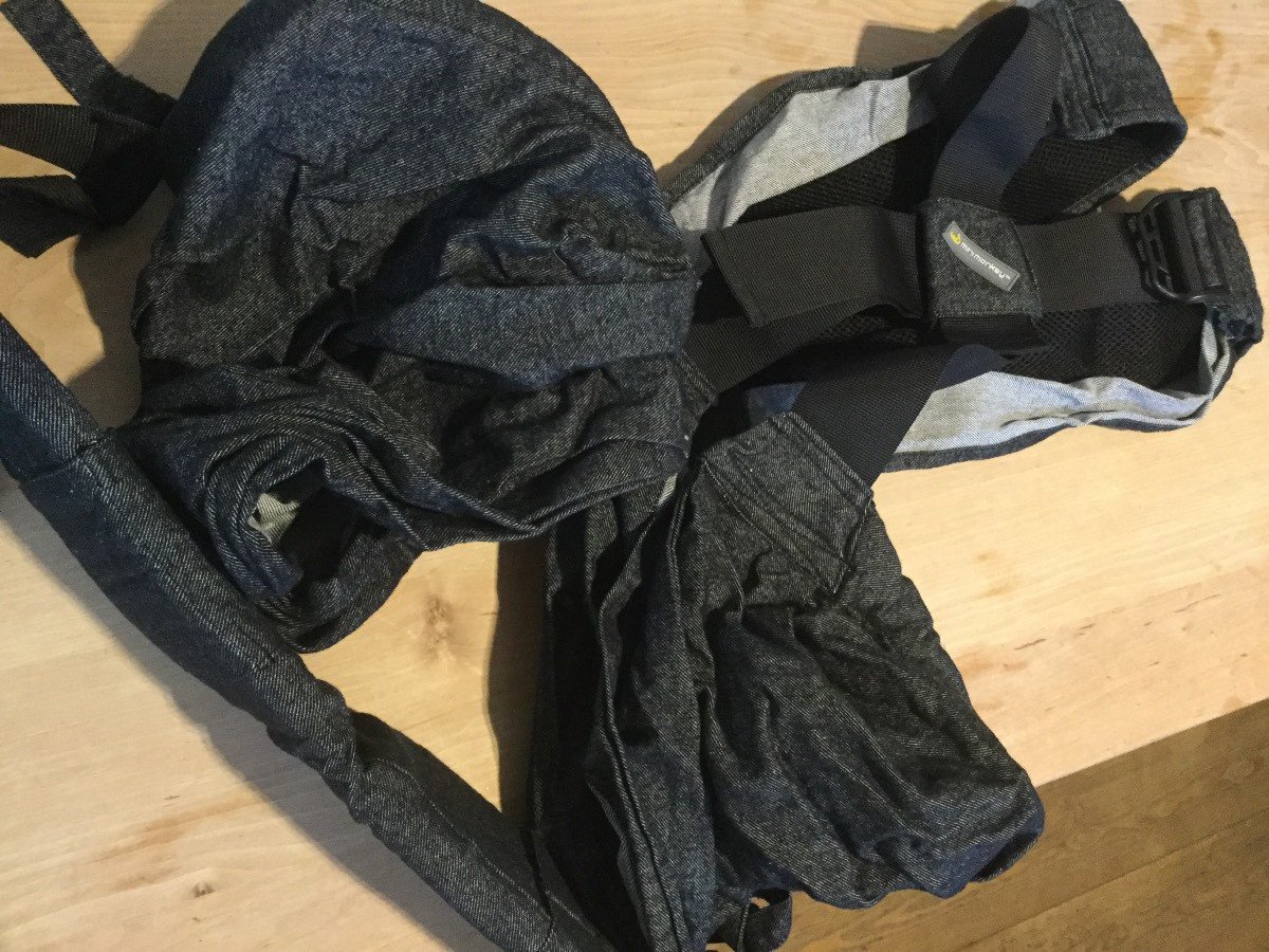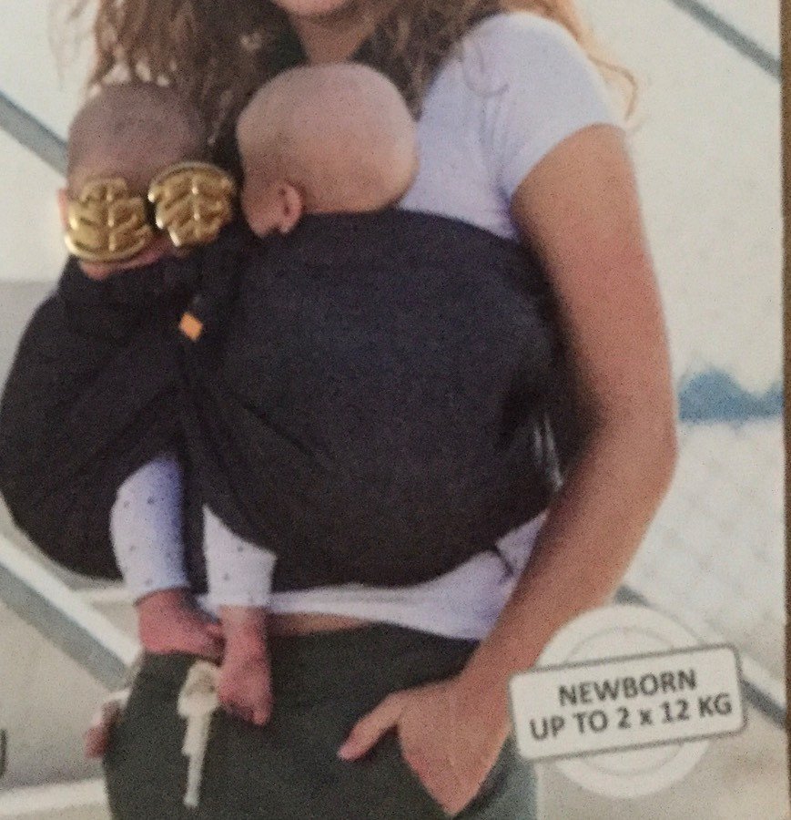 Zwillinge ab der Geburt bis 12kg praktisch tragen. Von Minimonkey aus dunkleblauem Jeansstoff in sehr gutem Zustand, leicht waschbar + Stofftasche original.