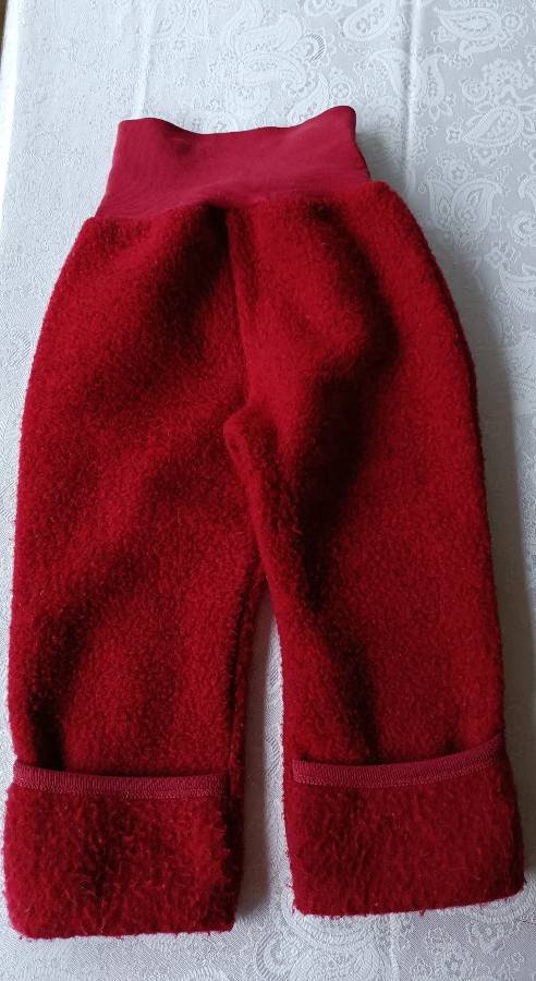 Outdoor Hose jobio aus Wollfleece Farbe dunkel Rot Größe 74/80 6-12 m 100% Wolle.