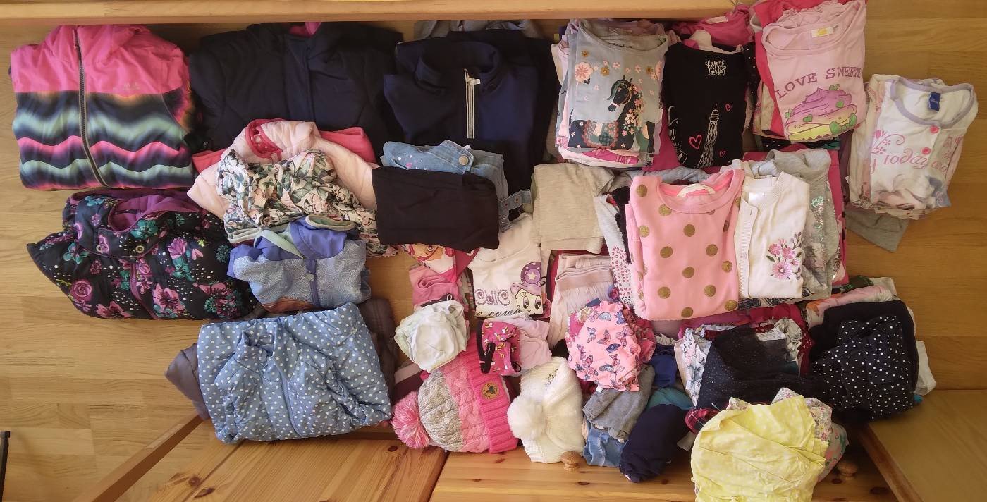 Lang- u. Kurzarmtshirts, Badeanzug, jede Mende Kleider, einige kurze Hosen, mehrere Übergangs- und Winterjacken, Mützen und eine Skituta