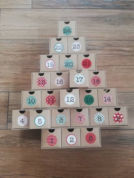 Adventkalender aus stabilen Karton mit Schubladen für kleine Überraschungen - Geschenke - Botschaften -