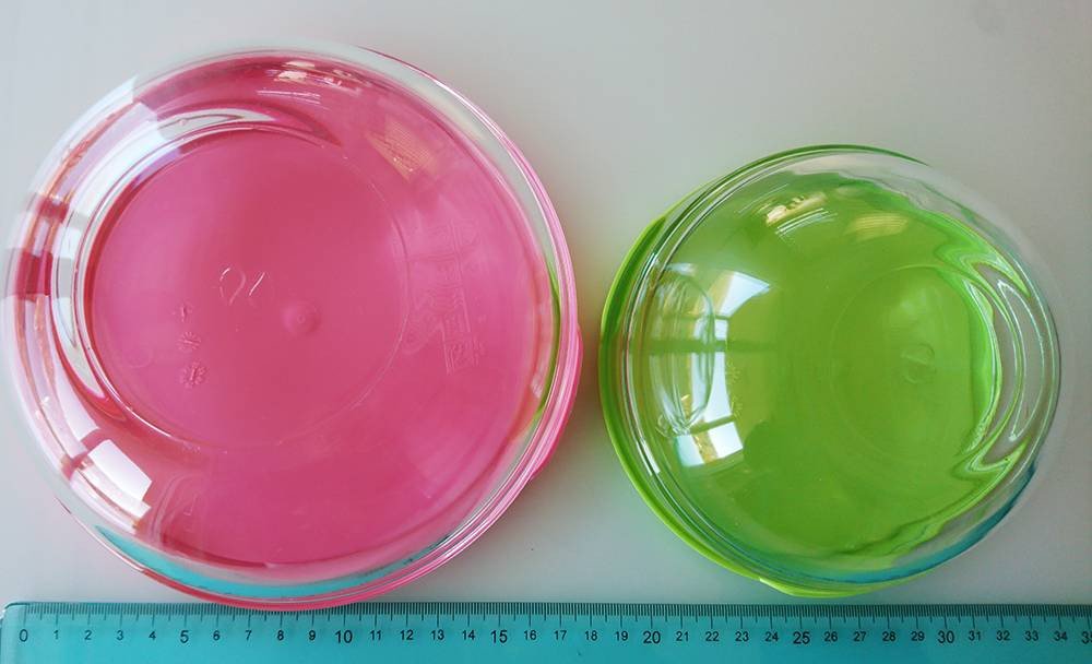 Eine: Ø ~17,2 cm und Volume: 1135 ml die Zweite: Ø ~14 cm und Volume: 595.00 ml