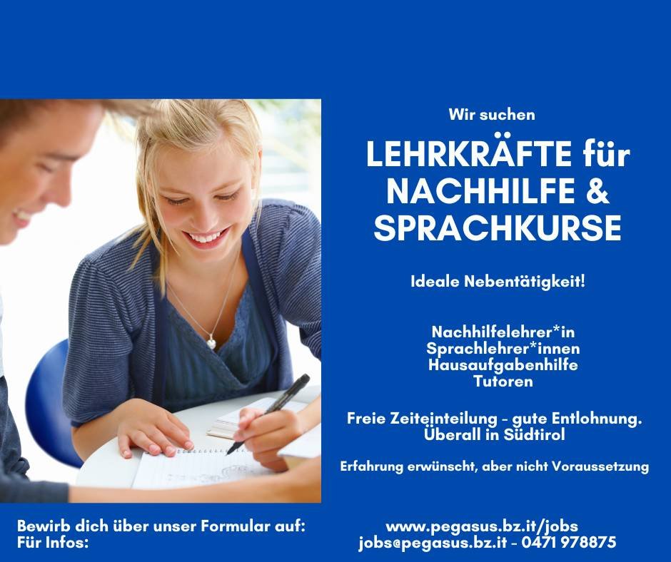 LEHRKRÄFTE für NACHHILFE und SPRACHKURSE gesucht.