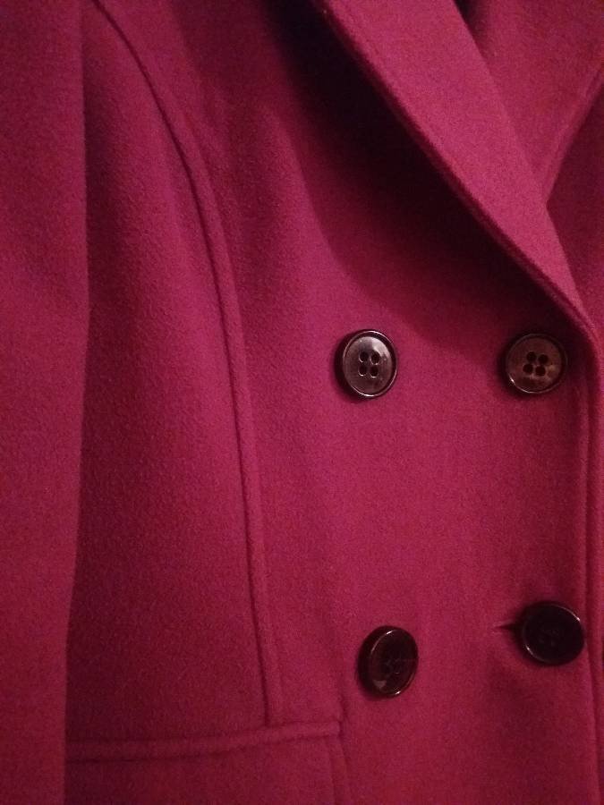 Zweireihiger Wintermantel in sattem Pink; mit zwei Taschen