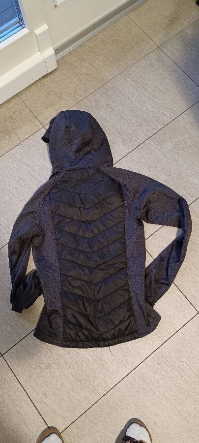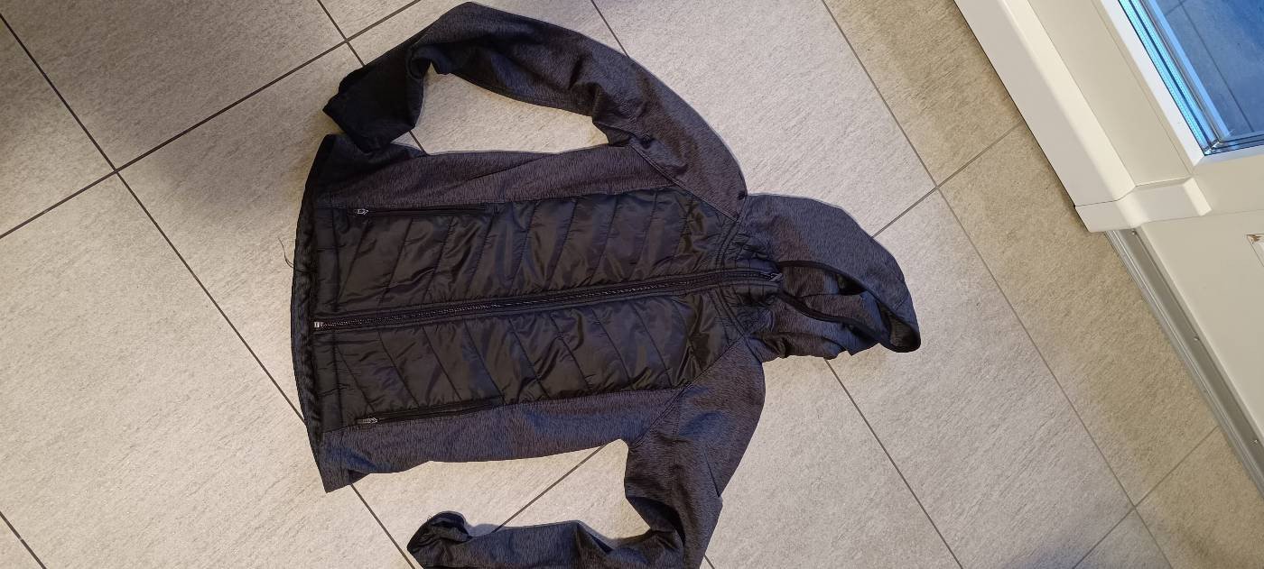 Leicht. Halb Daunen en. Ein Teil inwendig Fließ. Außen normal. Trocknet schnell. Atmungsaktiv. In zwei Farben erhältlich dunkel violett und schwarz/dunkelgrau