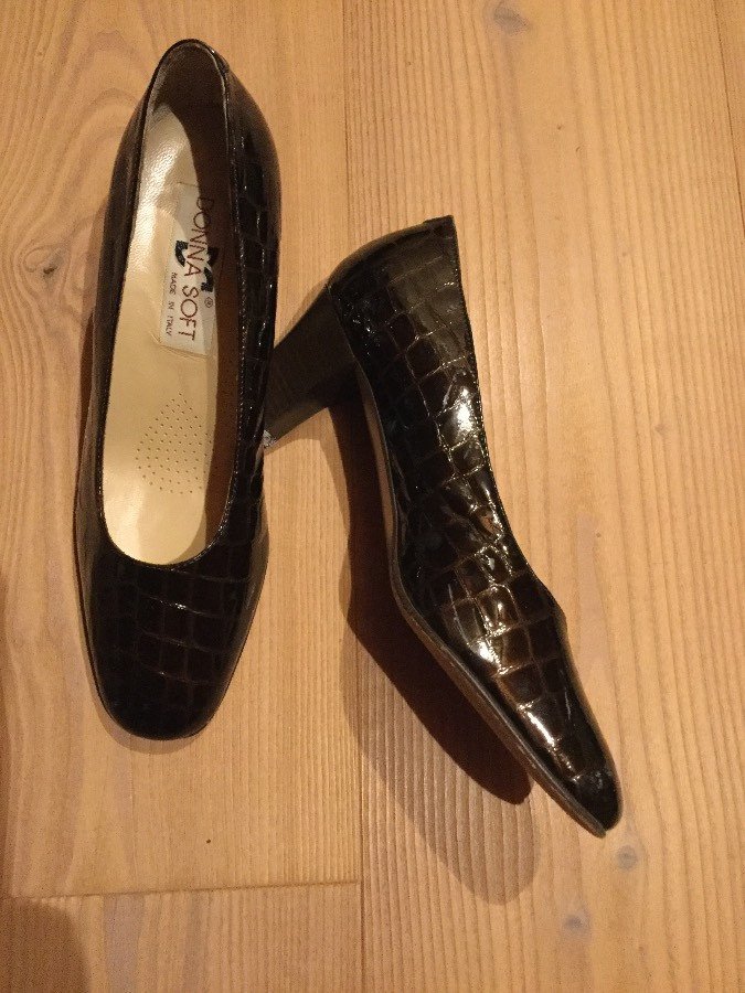 Braun glänzender Damenschuh mit 5cm Absatz von Donna Soft, bequem und in gutem Zustand