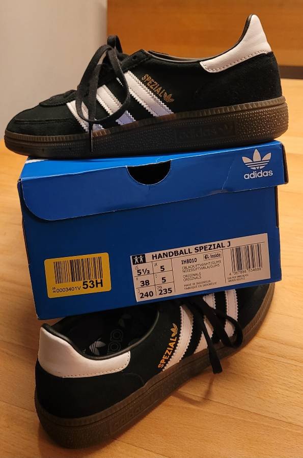 Verkaufe einmal getragene Sneakers Marke adidas handball spezial, Grösse 38 in schwarz