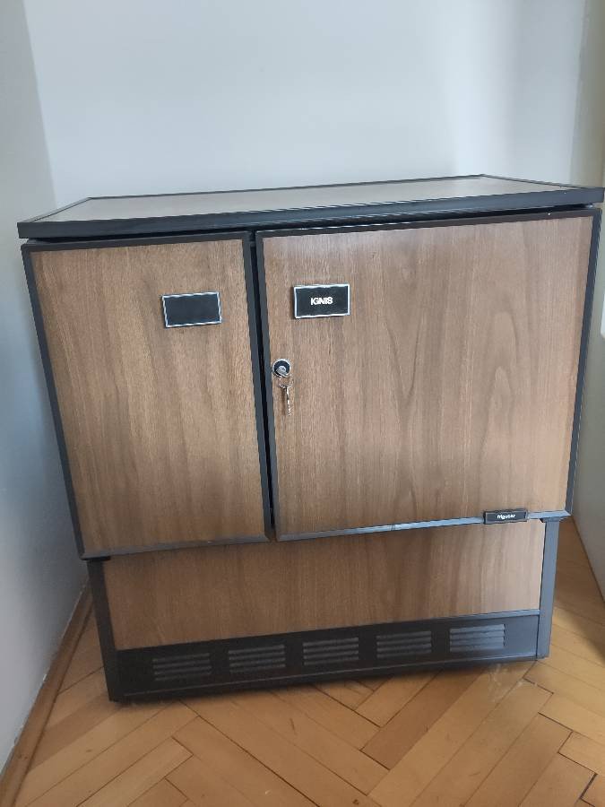 Zum Verkauf steht ein seltener IGNIS Kühlschrank (Frigobar) im schicken Retro-Holzdesign.