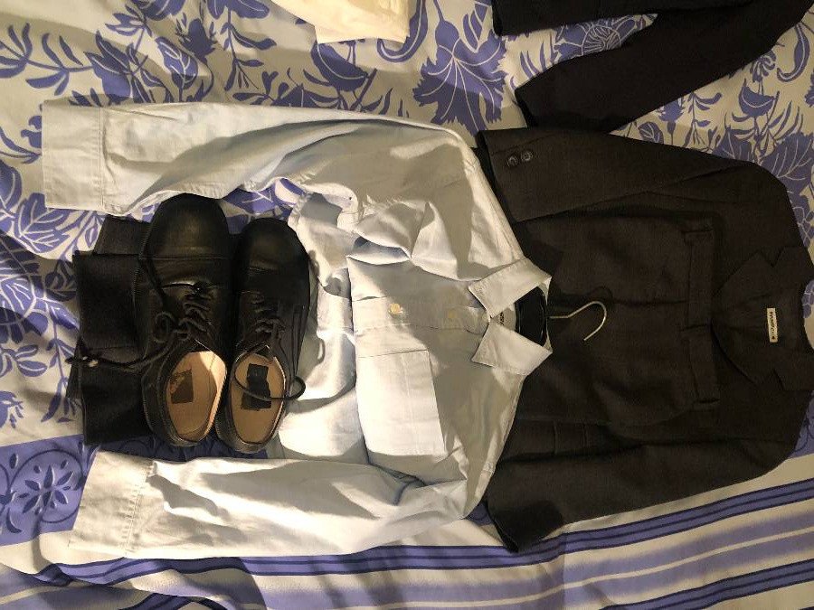 divisa per ragazzo come nuova - misura per 8 anni da 90-102cm grigio con camicia e scarpe nere