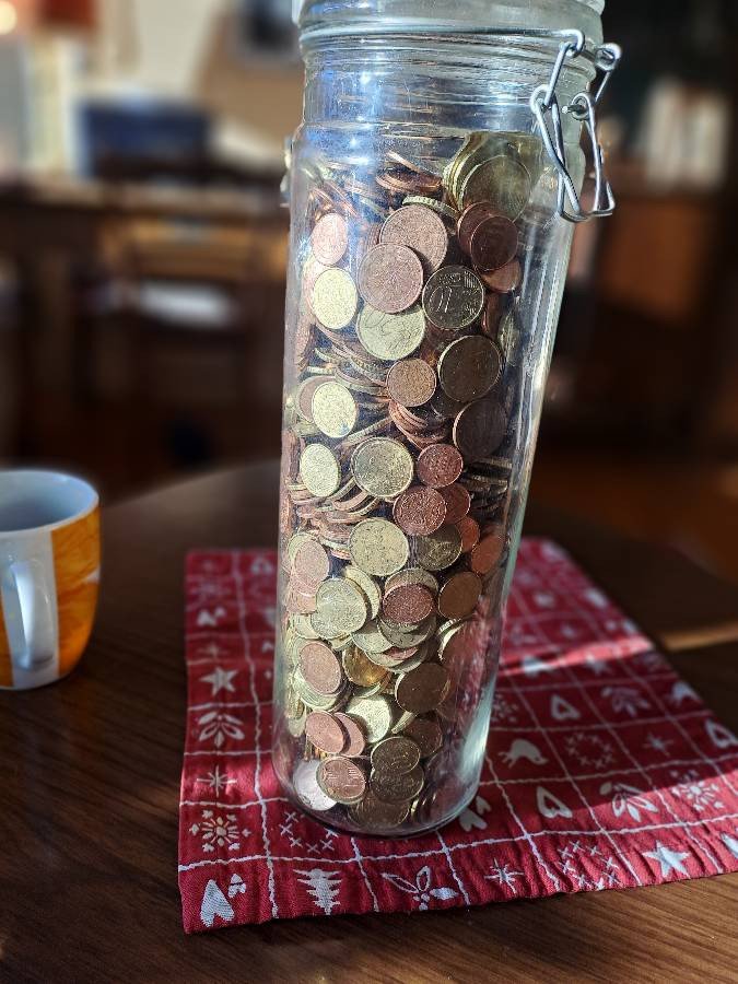 1. 1. 5. 2. 10. 20. 50. Cent. Glas höhe 31 cm. Breite 11 cm...