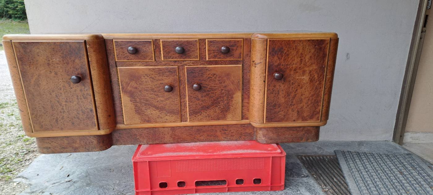 Möbel hat mehrere Schubladen, über 1 m lang.