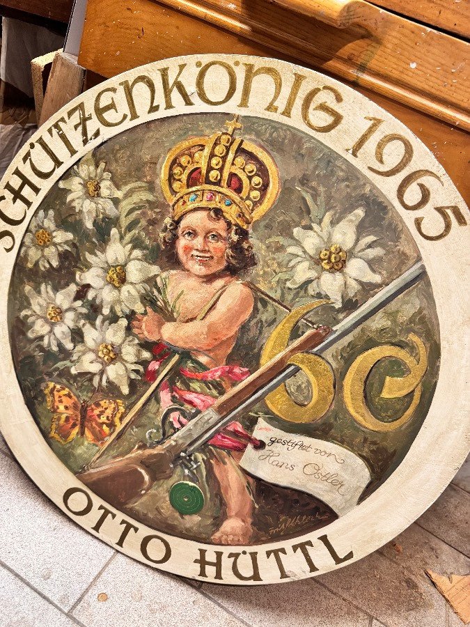 Schiesscheibe in öl gemalt von 1963 Durchmesser 53cm man könnte die Scheibe neu beschreiben