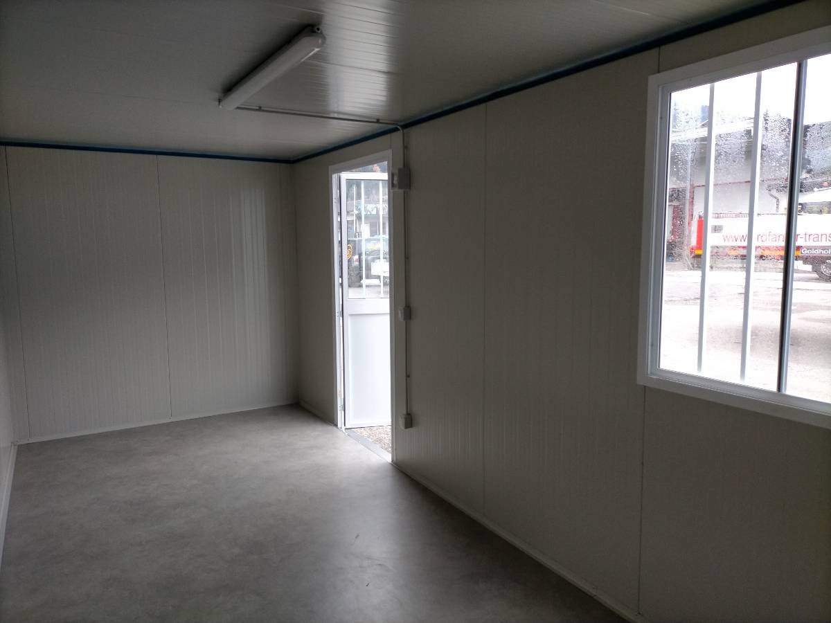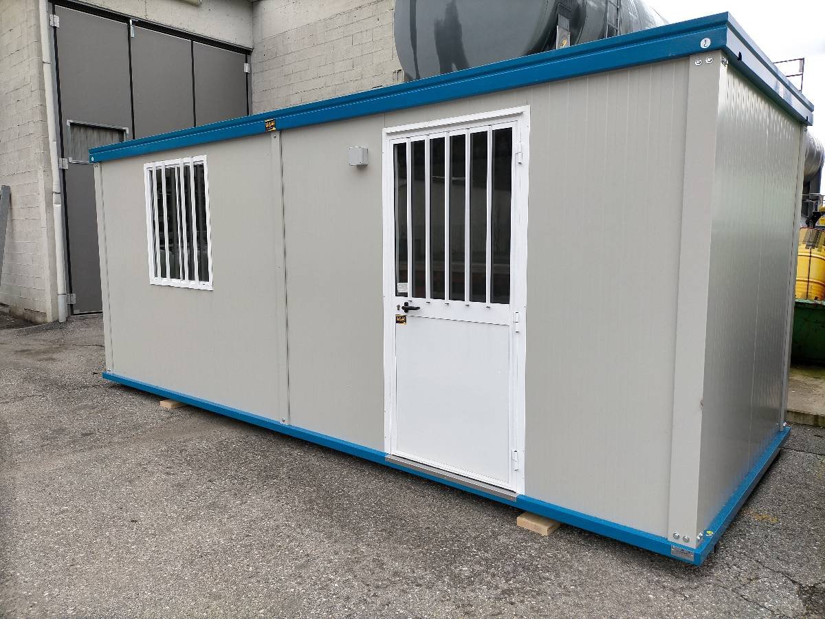 Raumcontainer Serie 50, 600x240x221HI, isoliert, 1 Fenster, 1 Tür mit Glas und Protektionsgitter, Beleuchtung, Thermokonvektor, Schutzschalter, Steckdose., Staplertaschen