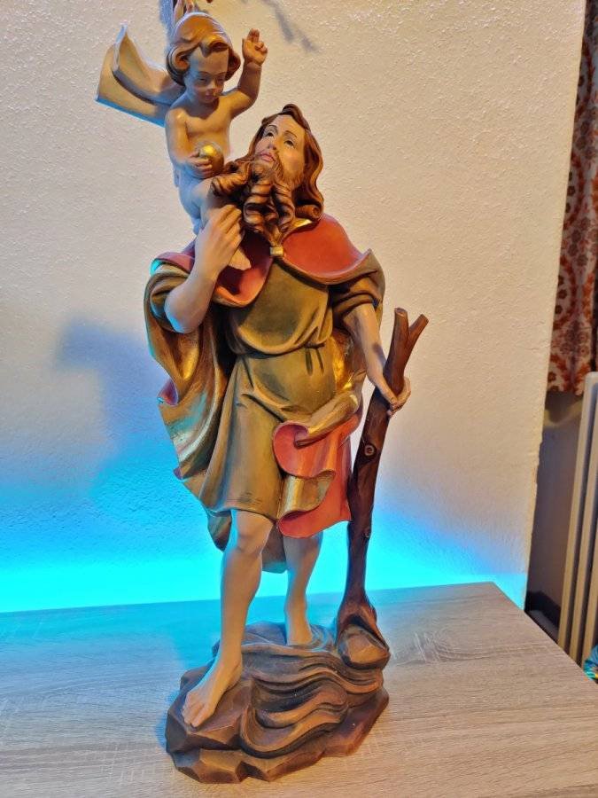 Verkaufe Heiliger Christophorus aus Holz.Größe: 56 cmEmpfehlungspreis: ca. 900€Preis 190 €Kostenlose Lieferung auf Termin.