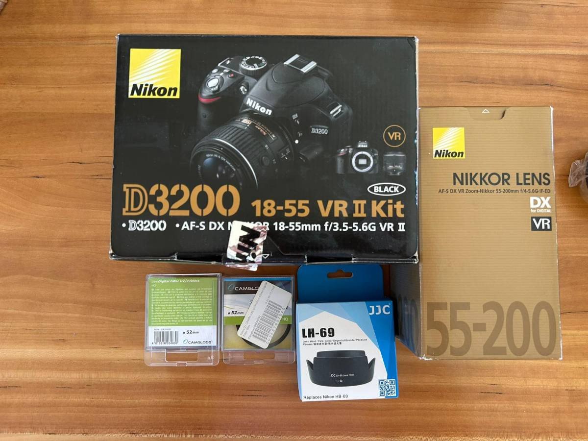 Verkaufe Digitalkamera Nikon D3200 mit 5.506 Auslösungen, 3 Objektiven in Top-Zustand wegen Nicht-Gebrauchs. Enthalten sind: