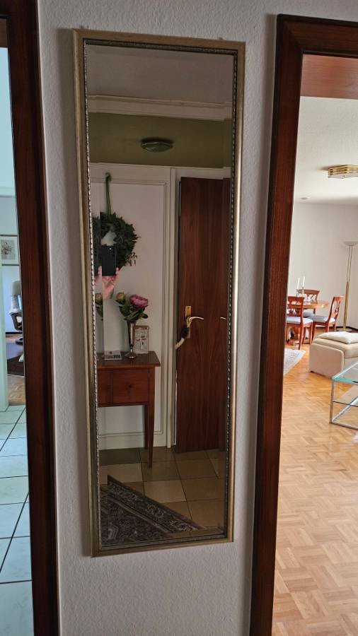 Ich biete einen Wandspiegel mit sehr schönem Holzrahmen und Facettenschliff, ideal für Flur oder Ankleide. Einwandfreier Zustand. Nur Abholung.