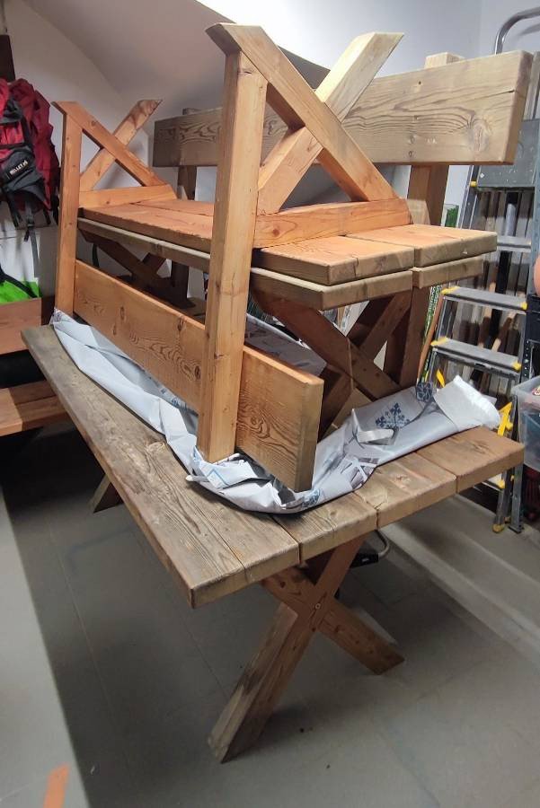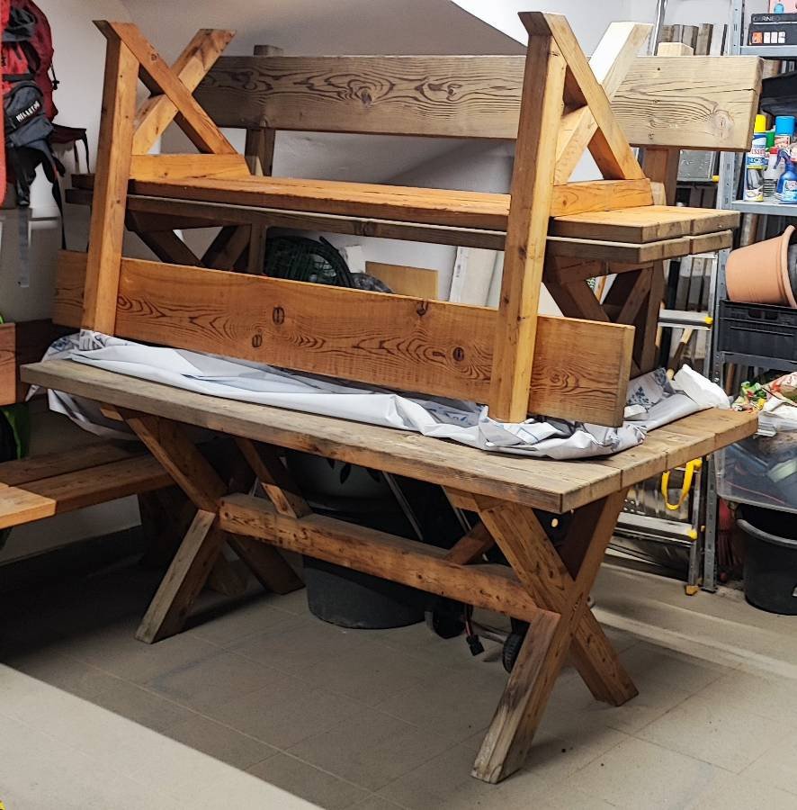 Sitzgarnitur bestehend aus Tisch & 2 Bänke