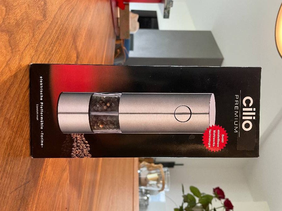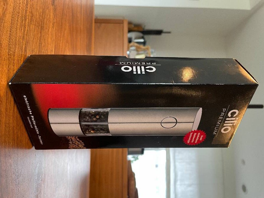 Diese Nagelneue Pfeffermühle würde ich gerne an jemand interessierten abgeben. Pfeffer sowie Batterien sind inklusive. Neu-Preis: 50Euro. Sie ist original Verpackt und ungebraucht. Marke: Cilio-Premium.