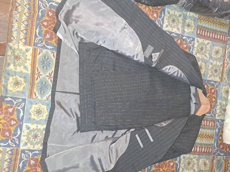 1. Anzug, nadelstreif grau, Gr. 52, 100 % cool Wool, wie neu, kaum gebraucht, gereinigt, wartet auf neuen Besitzer, da er viel zu schade waere ihn zu entsorgen. Leider hat der alte Besitzer Figur gewaechselt und kann ihn nicht mehr anziehen. guenstig abzugeben.