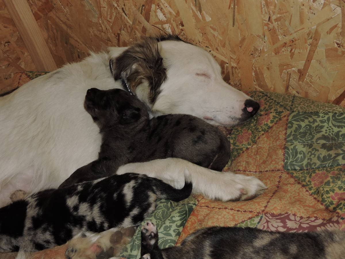 Vater ist ein Bordercollie-Berner-Mischling (mit Huskyeinschlag), mittlere Größe. Mutter ist eine Lagorai-Pastore della Sila, eher groß. Beide sind sehr bewegungsfreudig, zäh und gesund; intelligent und brauchen eine stabile und herzliche Familie, mentale Förderung und Auslauf im Freien.