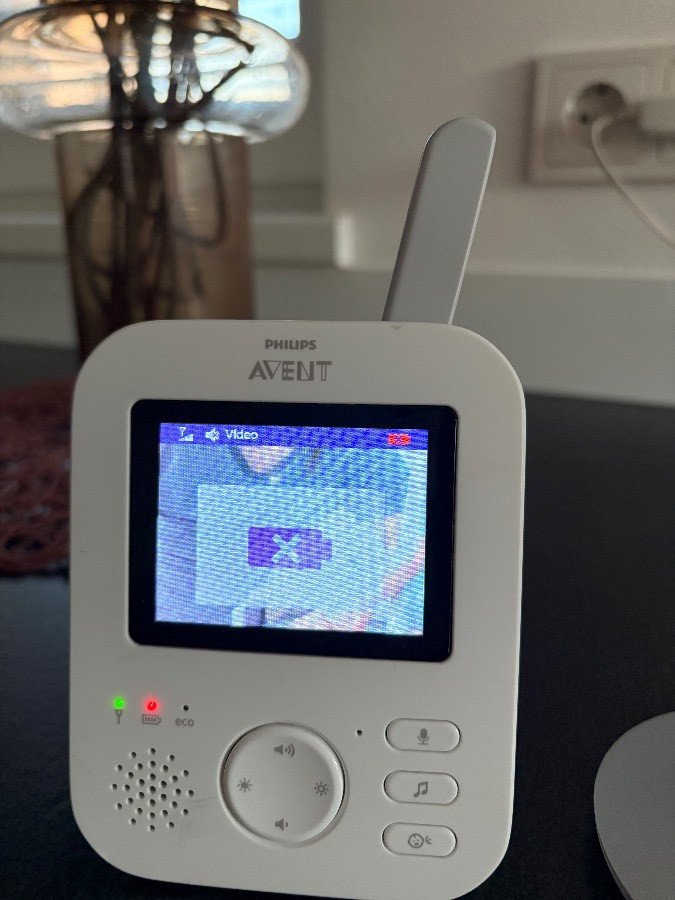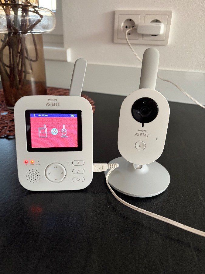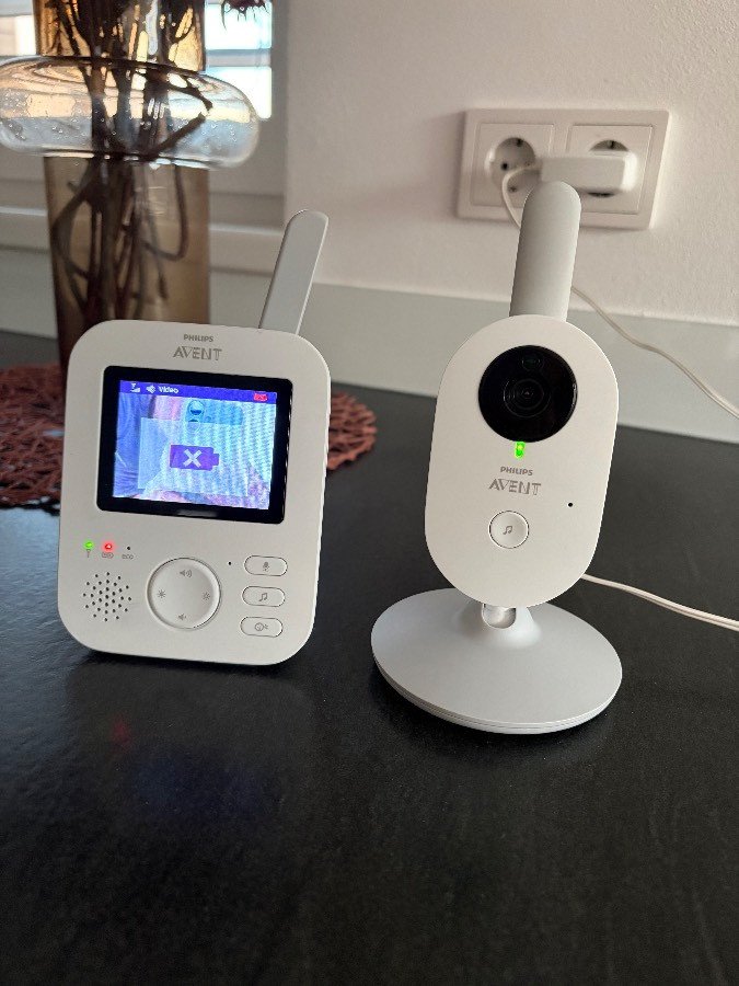 Top Zustand, 2,7’’ Farbdisplay, Reichweite innen ca. 50m, außen bis zu 300 m, Kamera benötigt Steckdose, Bildschirm muss aufgeladen werden und kann dann kabellos eingeschaltet werden, sichere Verbindung!