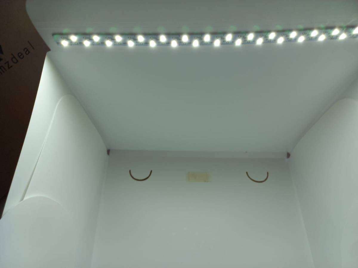Das kleine Foto-Set ist eine faltbare Box 40 cm Höhe 40 cm Breite 40 cm Tiefe Super geeignet für kleine Produkte mit eigener Innen-LED Beleuchtung. Perfekt für kleine Produkte. Wurde nie benutzt, ist daher NEU.