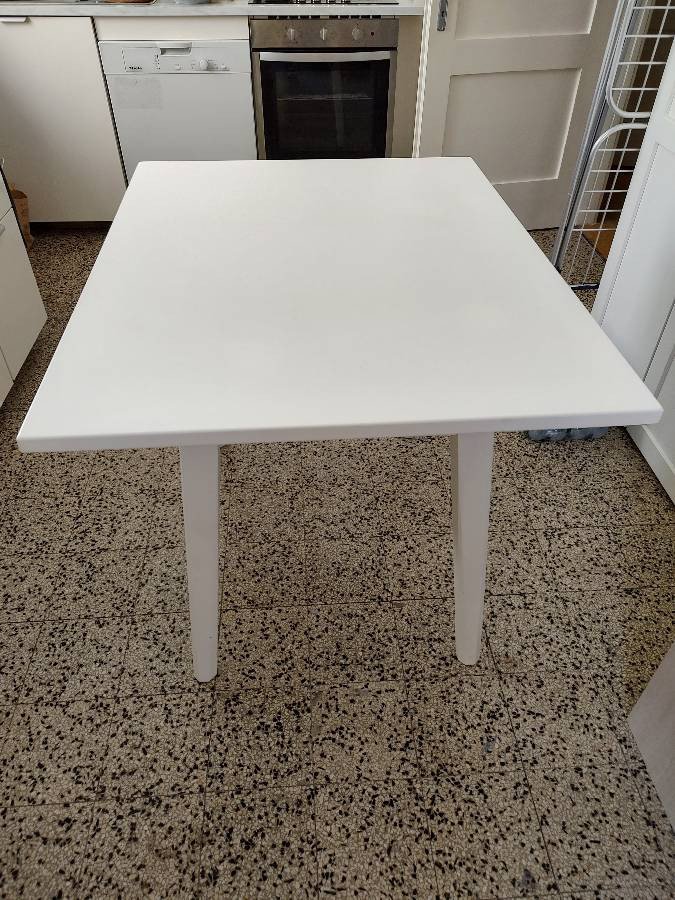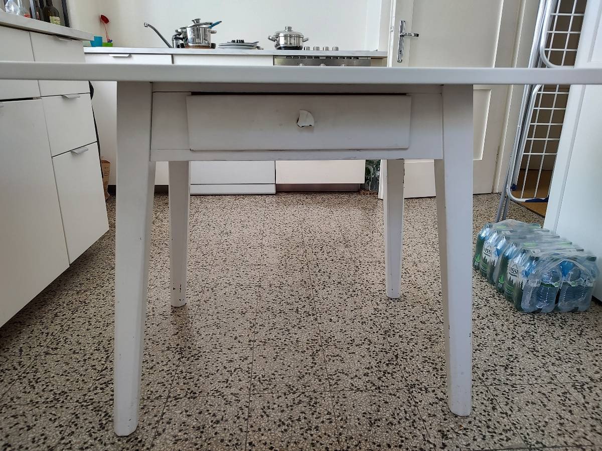 Biete Küchentisch mit Schublade an, Breite 80 cm, Länge 103 cm, Höhe 77 cm. An den Beinen gibt es Abnutzungsstellen, die sich leicht überlackieren lassen. Der Schubladen - Griff müsste ersetzt werden. Der Tisch muss in 39100 Bozen in Gries Quirein gegen Barzahlung abgeholt werden.
