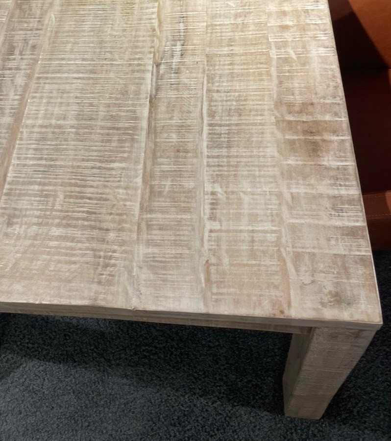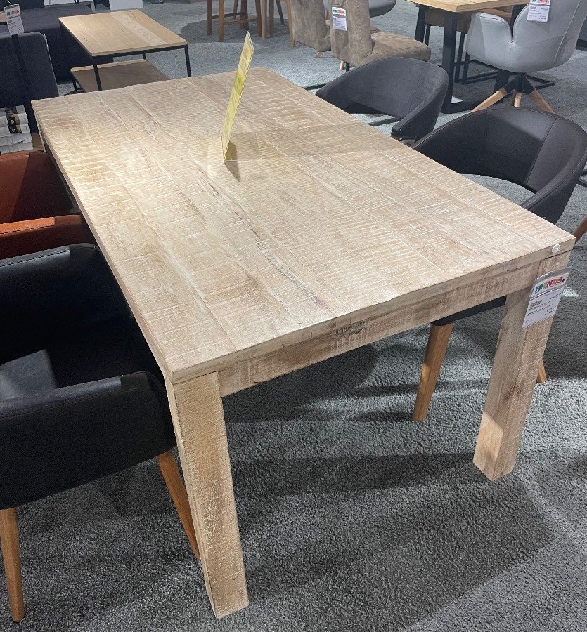 Der Tisch wurde vor vier Jahren erworben und wird nun aus Platzgründen ersetzt. Keine Gebrauchsspuren. Die Oberfläche weist natürliche Wölbungen des Holzes auf, was dem Tisch einen rustikalen Look verleiht. Maße: 160 x 90 cm.
