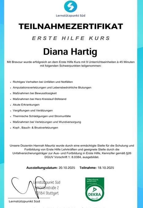 Sprachkenntnisse: Deutsch, Englisch, (fortschreitendes) Italienisch