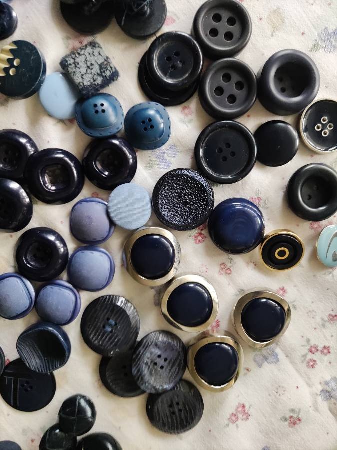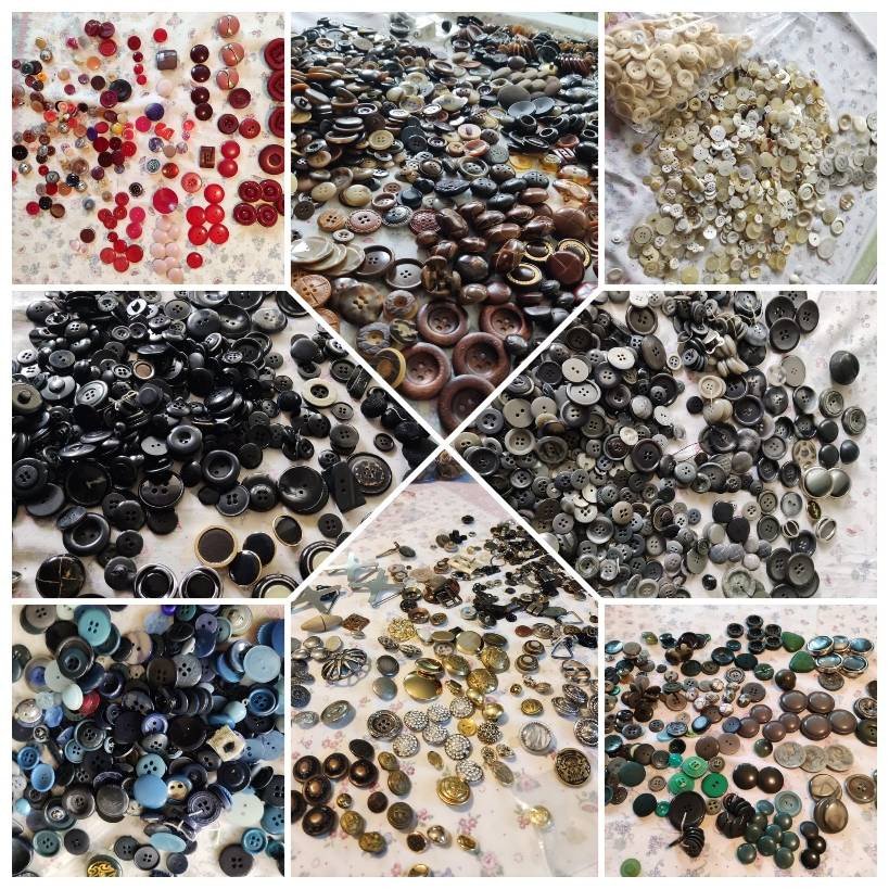 Ich verkaufe Sammlung von farbigen Vintage-Knöpfe: blau, schwarz, grau, rot, grün, weiß und Metall. (Braun in Photo nicht mehr verfügbar!)