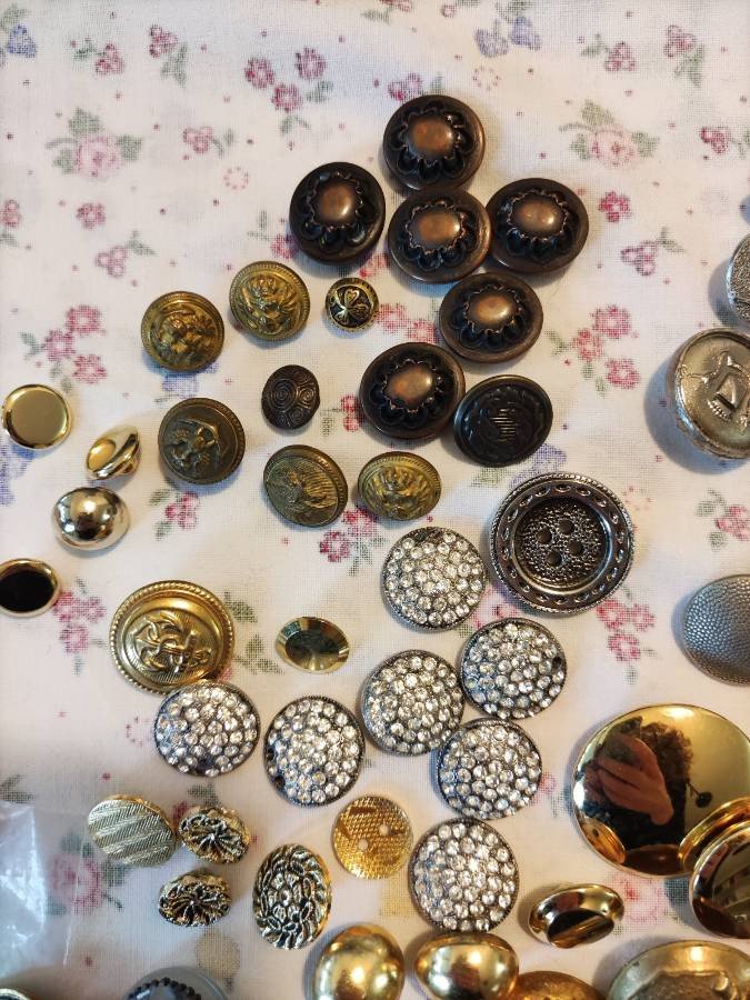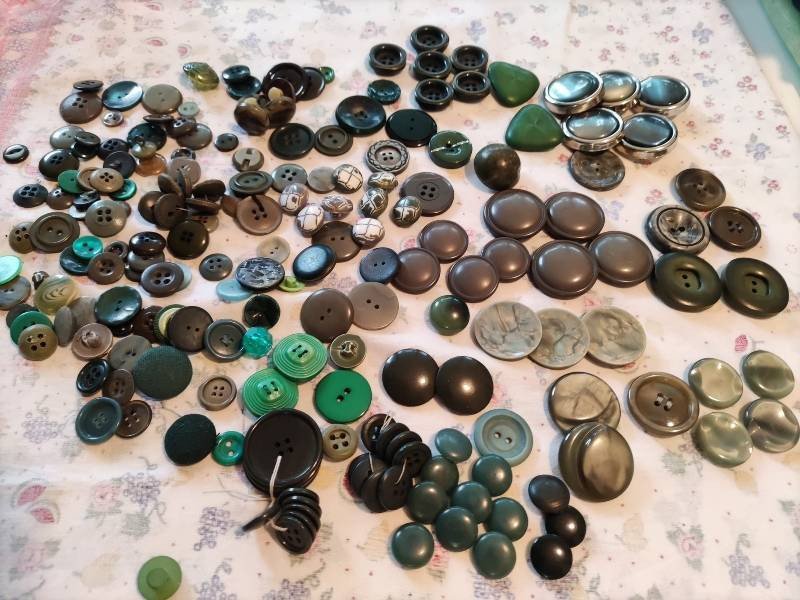 Farbige Vintage-Knöpfe: Blau, Schwarz, Grau, Rot, Grün, Weiß un