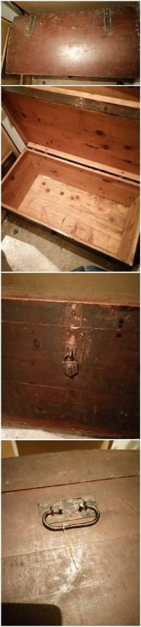 Alte Truhe aus Holz, ca. 96 cm lang, ca 48 cm breit, ca. 49 cm hoch, abzugeben.