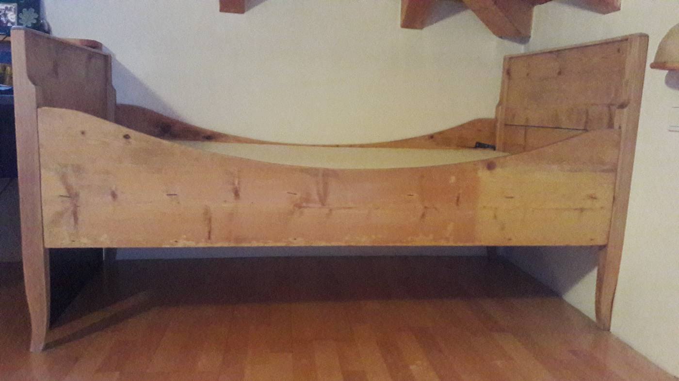 Altes abgelaugtes Bettgestell gegen freiwillige Spende abzugeben