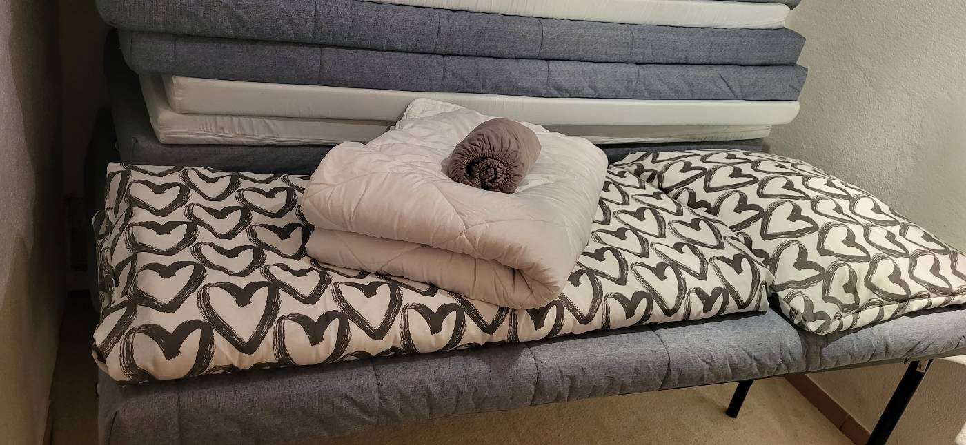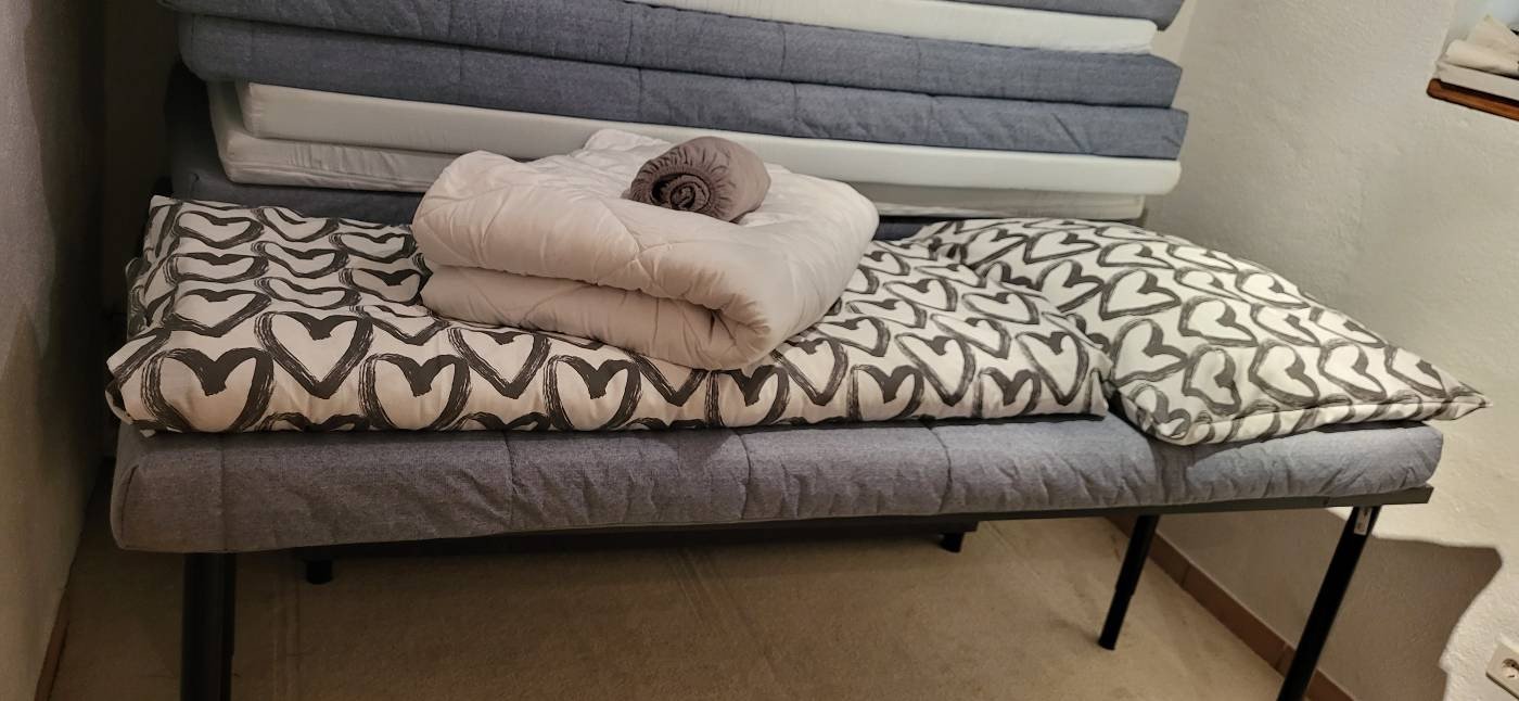 Verkaufe komplettes insgesamt 16 x Bettset bestehend aus Matratze 80x200, Spannleintuch grau, Decke 120x200, Kissen 80x80 mit passenden Bezügen.