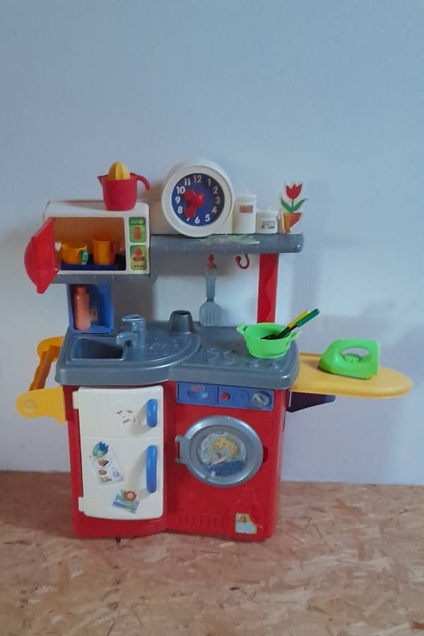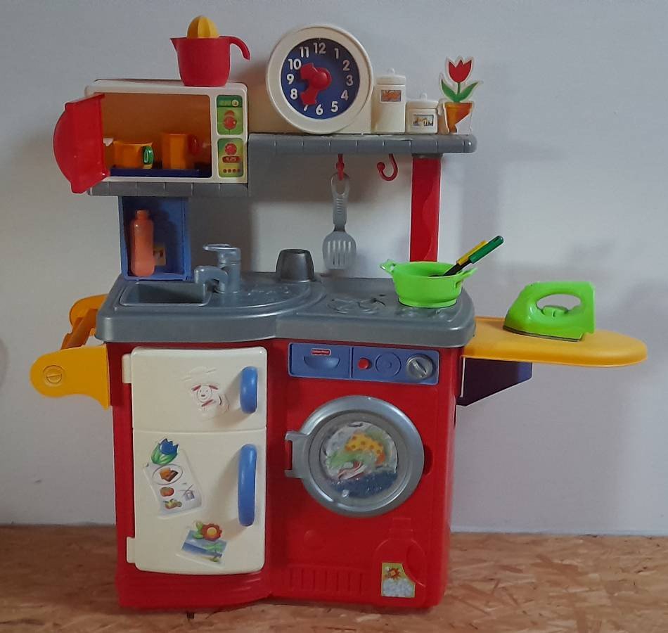 Sehr gut erhaltene Spielküche mit Waschmaschine, Bügelbrett, Bügeleisen, viel Geschirr und Zubehör günstig zu verlaufen.