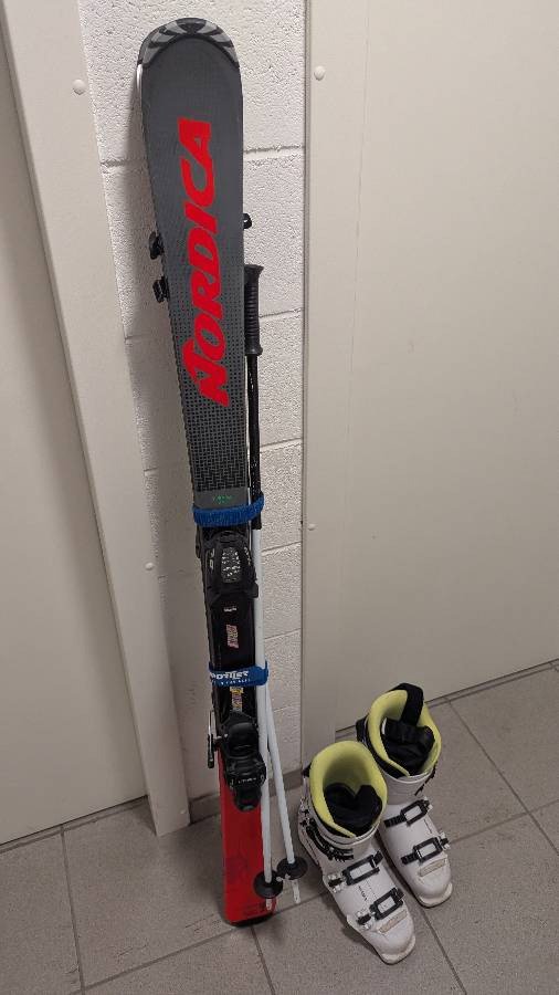 Komplette Skiausrüstung, Ski nur eine Saison gebraucht. Ski Nordica 140 cm + Bindung Marker, Skistöcke und Skischuhe Head Raptor 70, Größe 26,0-26,5 (ca. 40-42), nur als Set ! zu verkaufen an Selbstabholer.