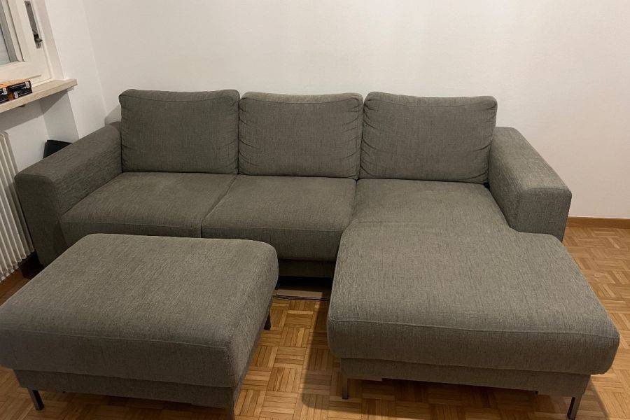 Verkaufe meine Eckcouch in grau mit Hocker wegen Umzug.