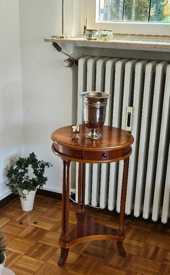 Sehr schöner Beistelltisch. aus Kirschholz mit Schubfach zu verkaufen.. Einwandfreier Zustand. Durchmesser 44 cm, Höhe 72 cm. Nur Abholung.