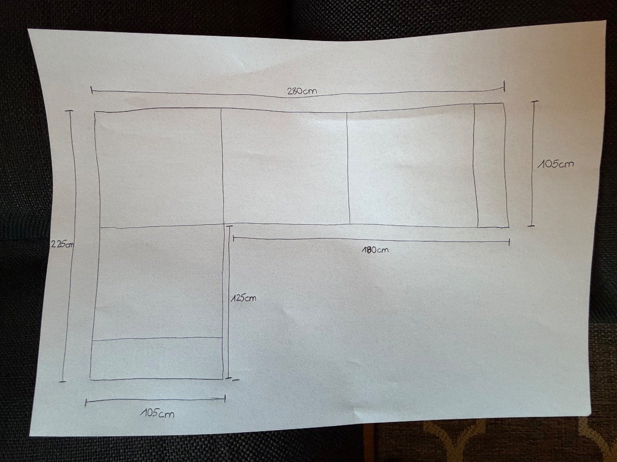 - Tiefe lange Seite: 225 cm