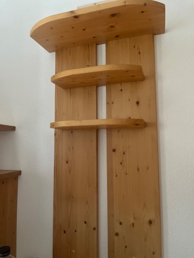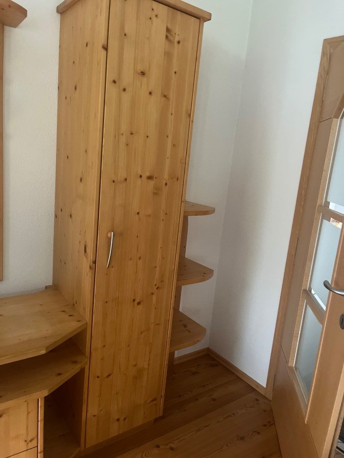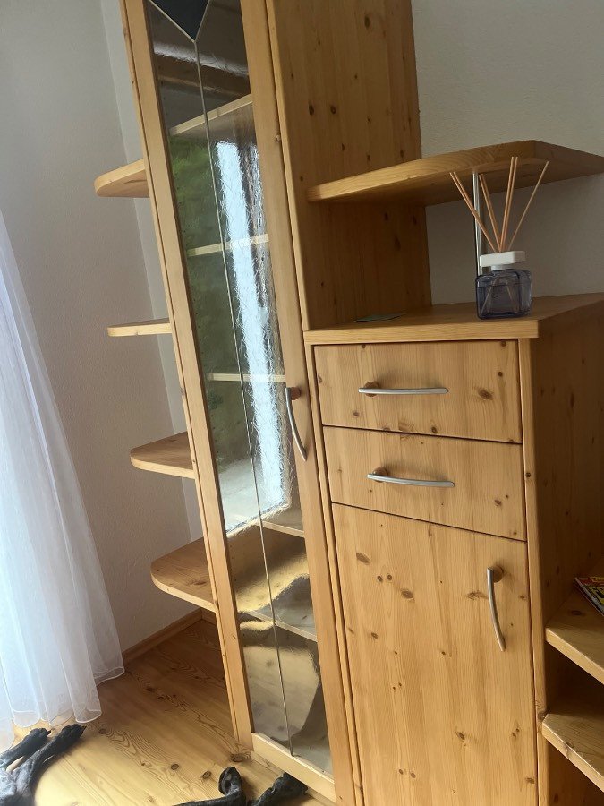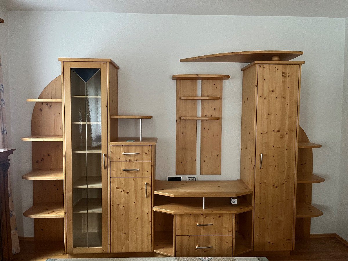 Sehr gut erhaltene Vollholz Wohnwand aus 8 Teilen bestehend. Keine bis kaum Gebrauchsspuren.